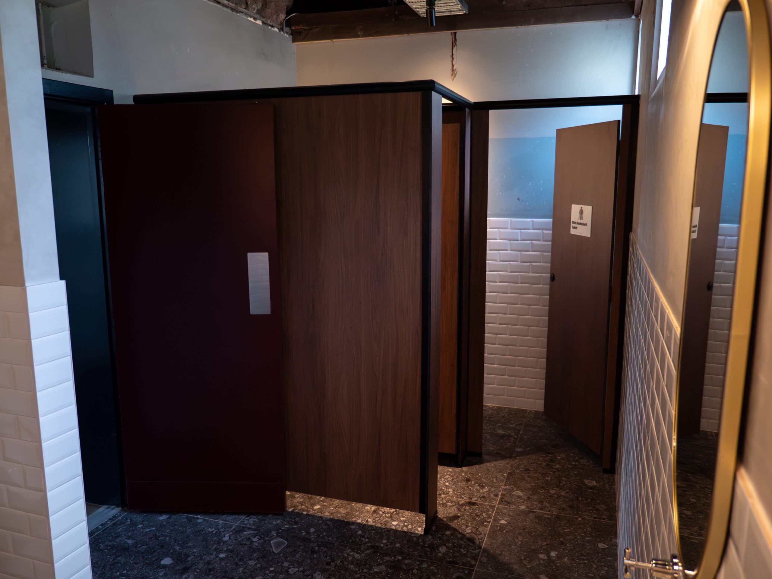 Our recent toilet partition fit out at Moon & Mary in Fremantle adds a distinct, sophisticated layer to this unique venue while respecting its rich historical context. Moon & Mary, located in the Old Fremantle Lockup on Henderson Street, has been thoughtfully renovated into a vibrant space featuring an Asian dining room, beer garden, and speakeasy-style distillery.